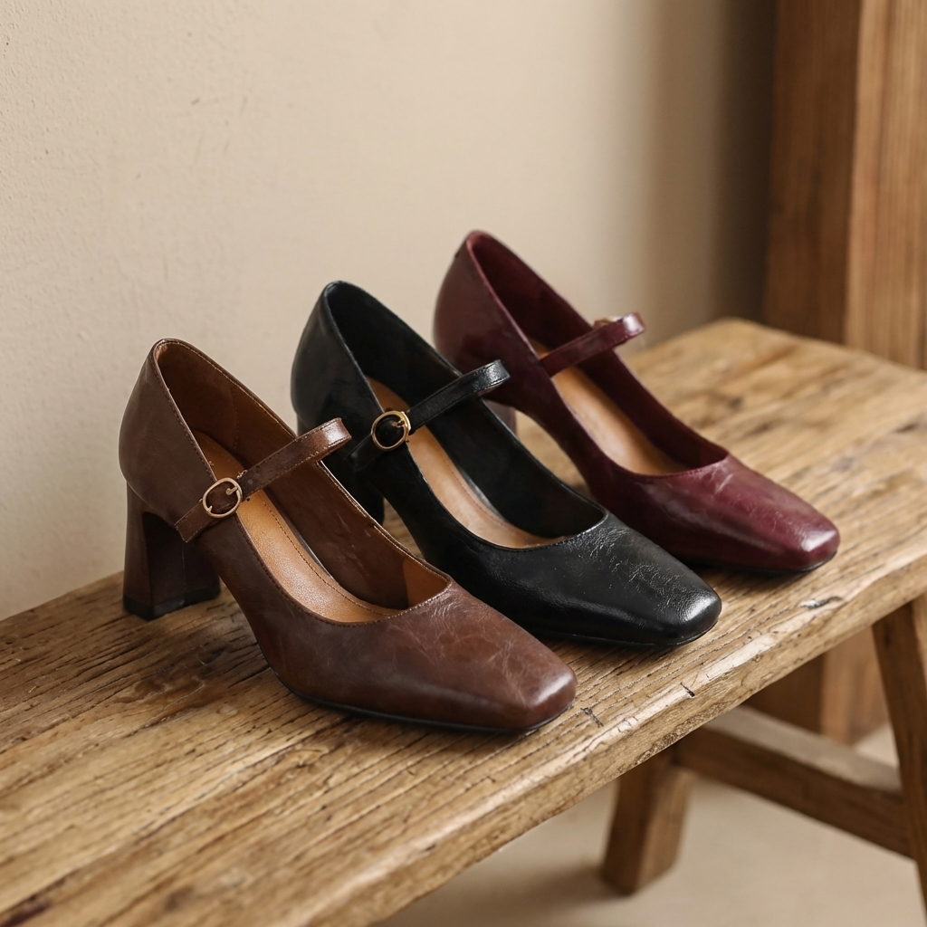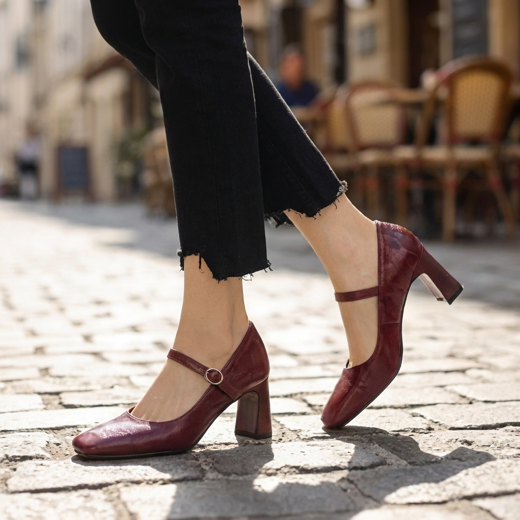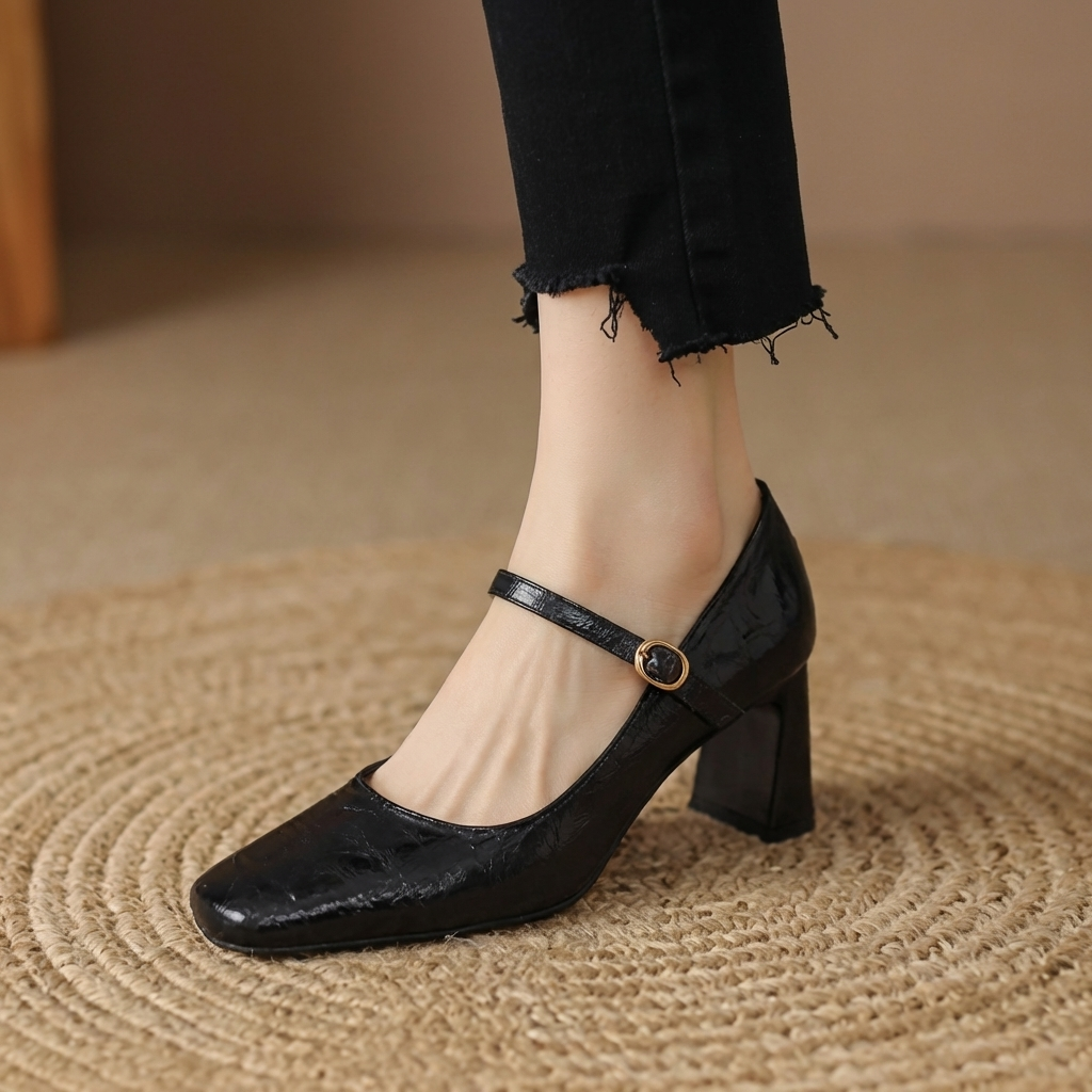 Crafted from premium leather, these heels feature a structured square toe and an elegant strap detail that adds a refined, feminine touch. The sturdy block heel provides stability, while the cushioned footbed ensures lasting comfort throughout the day.
